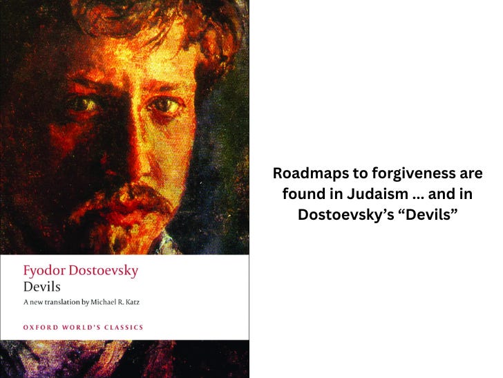 We are fast approaching (pun intended) Yom Kippur, the Day of Atonement. And I just finished Dostoevsky’s novel “Devils,” whose best chapter (IMHO) delves into the issue of forgiveness.
